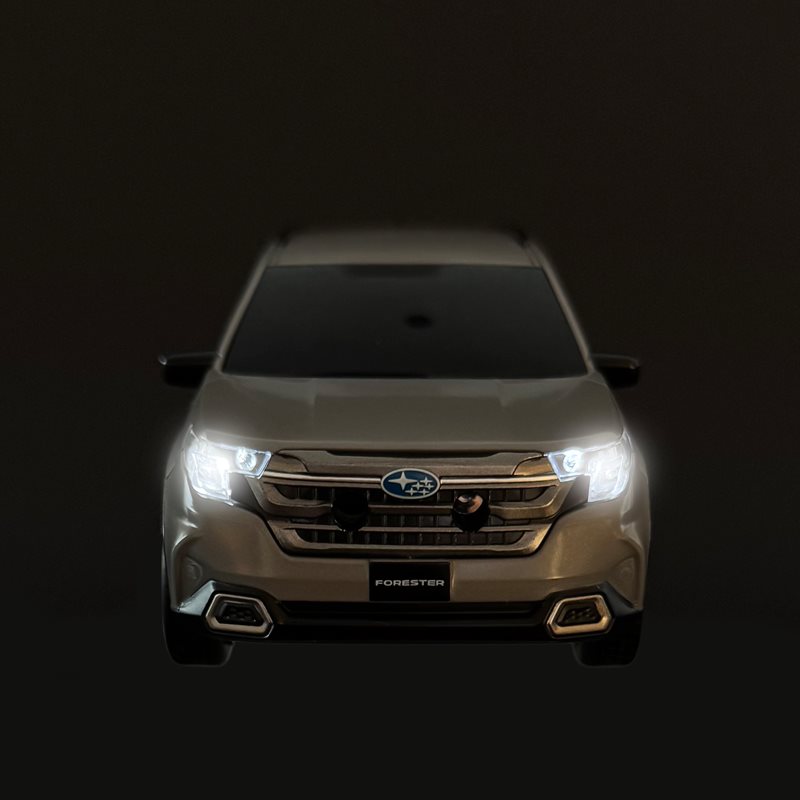 Denna detaljrika leksaksbil är en miniatyrversion av Subaru Forester utrustad med en realistisk EyeSight-simuleringsfunktion.